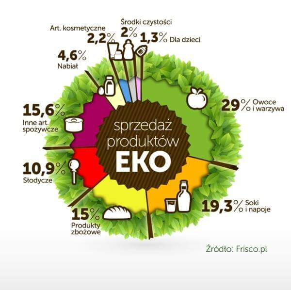Z analizy Frisco.pl wynika, że wśród artykułów ekologicznych największą popularnością cieszą się warzywa i owoce – stanowią one niemal jedną trzecią wszystkich organicznych towarów kupowanych w sieci. Na drugim miejscu plasują się stuprocentowo naturalne soki (w tym również te pochodzące z produkcji kwaszonek) oraz inne napoje - na czele z produktami orkiszowymi i zdrowymi napojami orzeźwiającymi. Klienci często wybierają też wyroby zbożowe oraz ekologiczne słodycze, wśród których najczęściej kupują różnego typu czekolady. Jednak eko nie musi być tylko żywność – w segmencie BIO znaleźć można również stworzone wyłącznie z naturalnych składników kosmetyki, a nawet organiczne środki czystości.